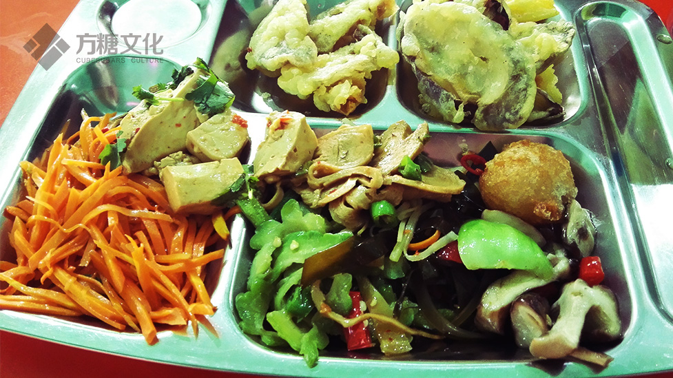 游完翠微峰,雖然大家都氣喘吁吁,但心情還是極好的,回賓館把所有行李物品打包后,司機帶我們去了當地一家地道的素食自助餐廳,雖然我們這些肉食動物吃慣了大魚大肉,但眼前的這些蔬菜豆腐等菜肴還是讓我們口水直流,大開殺戒,我們一次一次地去柜臺夾菜,積累能量,后面還得坐將近一天的火車呢。