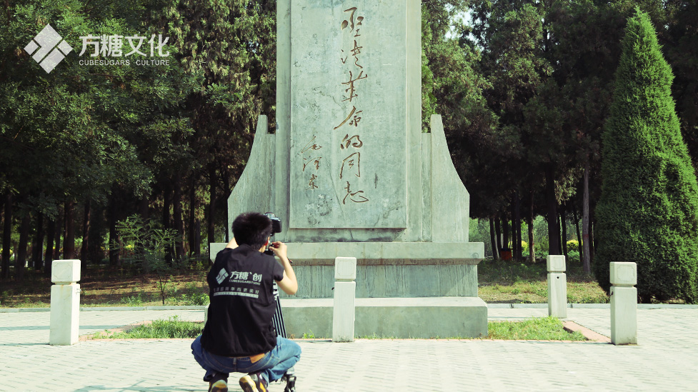 攝制組分兩隊人馬,一隊拍攝正門、廣場和雕像的多個景別,另一隊進行航拍。從上空俯瞰,董振堂事跡陳列館外觀為八角帽形,造型獨特而有新意;廣場兩側的植被郁郁蔥蔥,生機盎然;廣場后面的碑林整齊有序,在綠樹掩映下更加耀眼醒目。