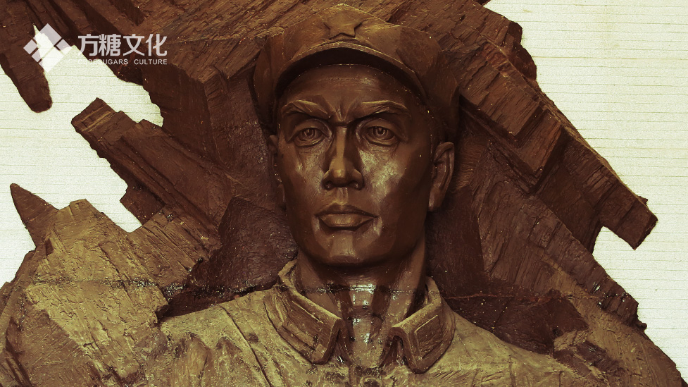 不多時,我們來到陳列館內進行拍攝。一進大廳,董振堂將軍的半身巨大雕像佇立在眼前,炯炯有神的雙眼毅然決然地正視前方,讓我們肅然起敬,在雕像的一側,是毛主席為董振堂將軍提的七個大字:堅決革命的同志。展廳陳列分為六大部分:追求光明、寧都起義、保衛蘇區、鐵流后衛、西征苦戰、光照千秋,涵蓋了董振堂將軍傳奇而的滄桑一生。在拍到董振堂將軍率領部隊在梅江河畔起義的超大噴繪時,我們不禁想起了前些日子在江西寧都拍攝的經歷,對董振堂將軍救國救民、一心為黨、南征北戰義無反顧的精神,感到更加崇高的敬意。