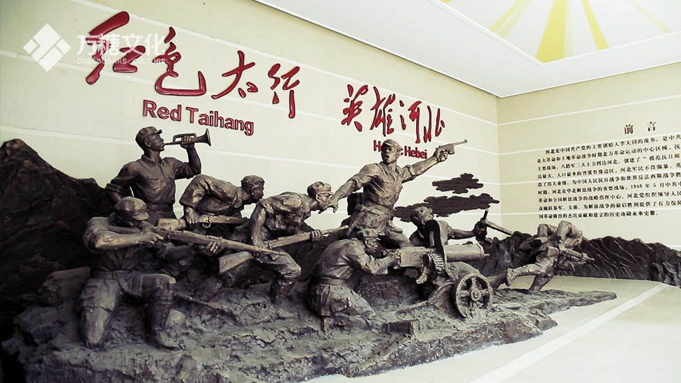 經過改造擴建后的華北革命戰爭紀念館,房頂上的“1919-1949”幾個大字格外醒目。走入館內,更是煥然一新。從大廳抬頭望去,陽光從八邊形的碩大玻璃窗傾瀉而來,超長的臺階和兩側的淡黃色墻雕一覽無遺,一方戰士群雕塑懸架于樓梯之上,顯得更加動人心魄。一上二樓,一座更大更長的戰士雕塑奪目而入,雕塑背后是毛主席提的八個紅色大字“紅色太行 英雄河北”。紀念館二樓展廳分為三個部分:紅旗插遍燕趙大地革命運動風起云涌;抗日烽火燃燒燕趙萬眾一心抵御外辱;河北軍民保衛解放區柏坡圣地孕育新中國。紀念館借助歷史圖片、油畫、模型、珍貴文物、雕塑、聲光電等多種表現形式,把1919至1949年間,河北軍民不畏強暴、英勇斗爭,為中國革命做出永垂史冊的歷史貢獻更加直觀地展現出來。