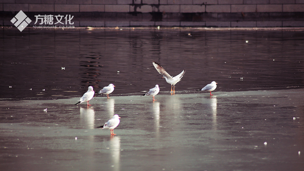 我們瞬間就被吸引過去,冬天里的海河部分還結著厚厚的冰,膽大的人都跑到上面去滑冰了(溫馨小貼士:現在氣溫變暖,很多地方的冰并不結實,為了安全,大家還是要盡量遠離冰面~)。數十只海鷗時而展翅飛舞,時而浮水嬉戲,時而冰上休憩,甚是美妙。我們拿出了單反和長焦鏡頭,在寒風中捕捉著這些美好的回憶。合影留念后,溫導決定踏上我們的下一個旅程——南市食品街!