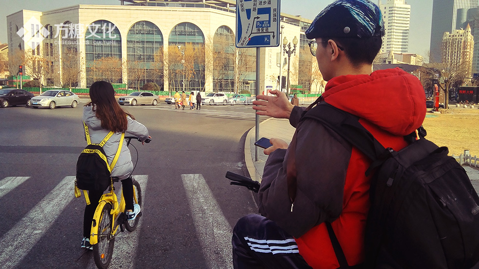此時此刻,共享單車ofo發揮了巨大作用,幾個路口過后,我們便抵達目的地。碩大的仿清式城樓下,大家饑腸轆轆,此時已近中午,看過美團里狗不理包子超低的評分后,我們被吆喝著來到一家特色的飯館,“醋溜木須”、“一鍋出”之后,我們腆腆肚子在南門尋找著共享單車,百度了下路線,朝下一個景點駛去。