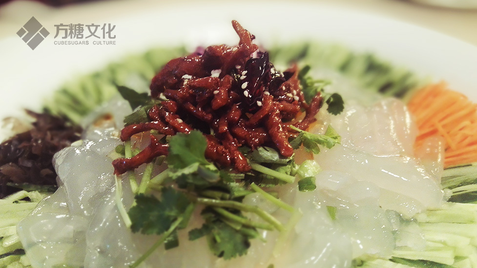 [天津特色菜:涼拌大拉皮,有個好聽的名字——“八星報喜”~]