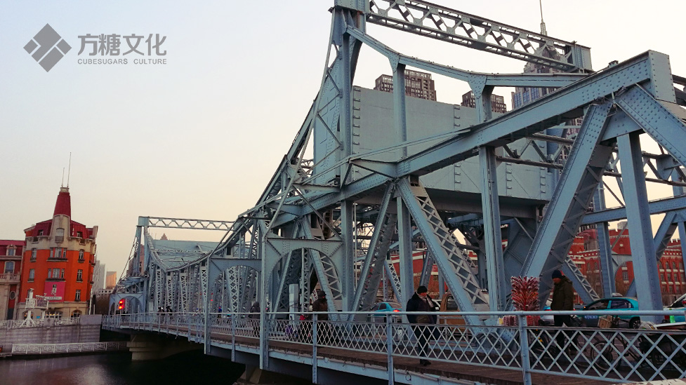 南側的解放橋建于1927年,橋長97.64米,橋面總寬19.5米。它不僅是天津的標志性建筑物之一,也是連接河北、河東、和平三區的樞紐橋梁。它見證了天津的解放,1949年天津解放后,正式改名為“解放橋”,并沿用至今。